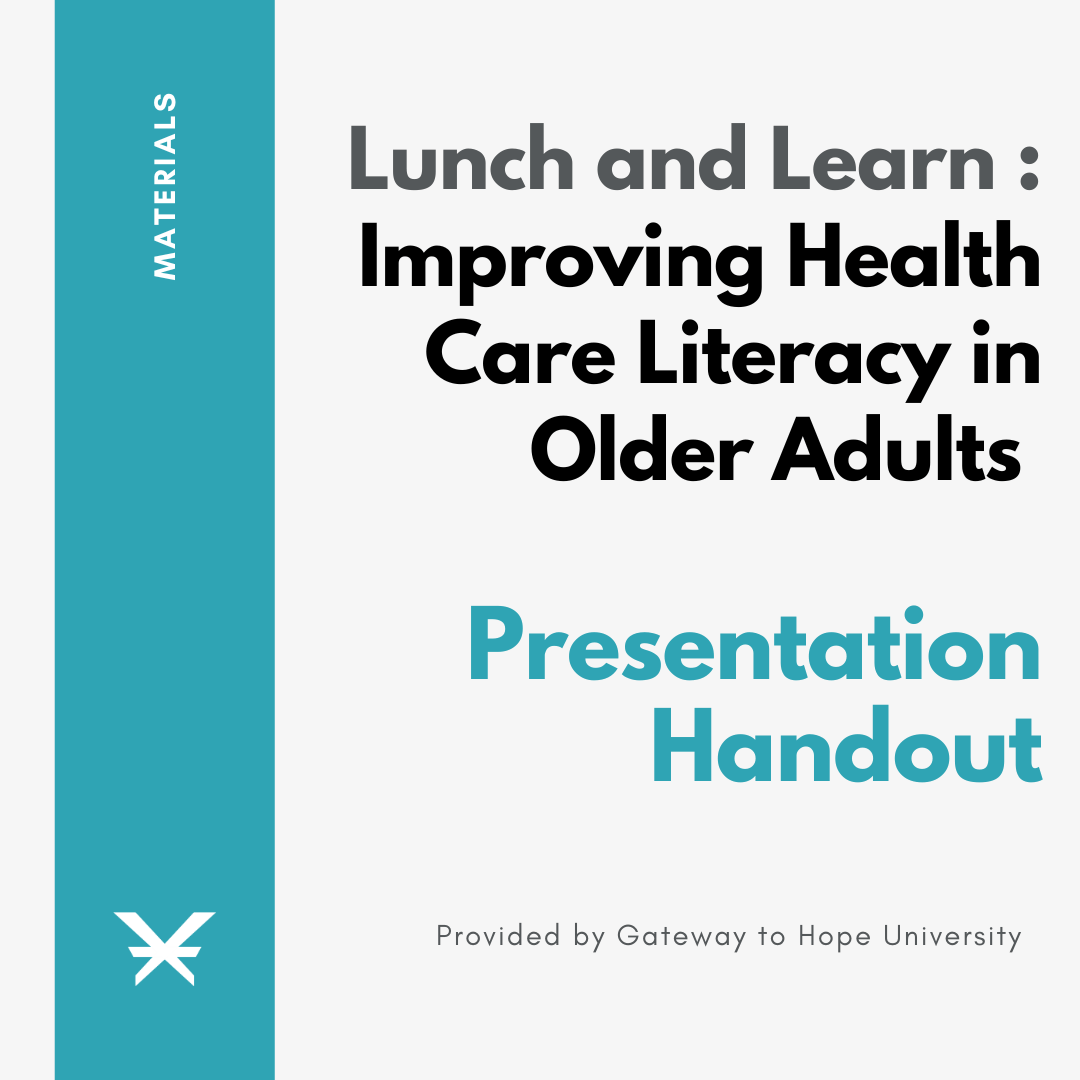 This Lunch and Learn educational event will discuss Improving Health Care Literacy in Older Adults.